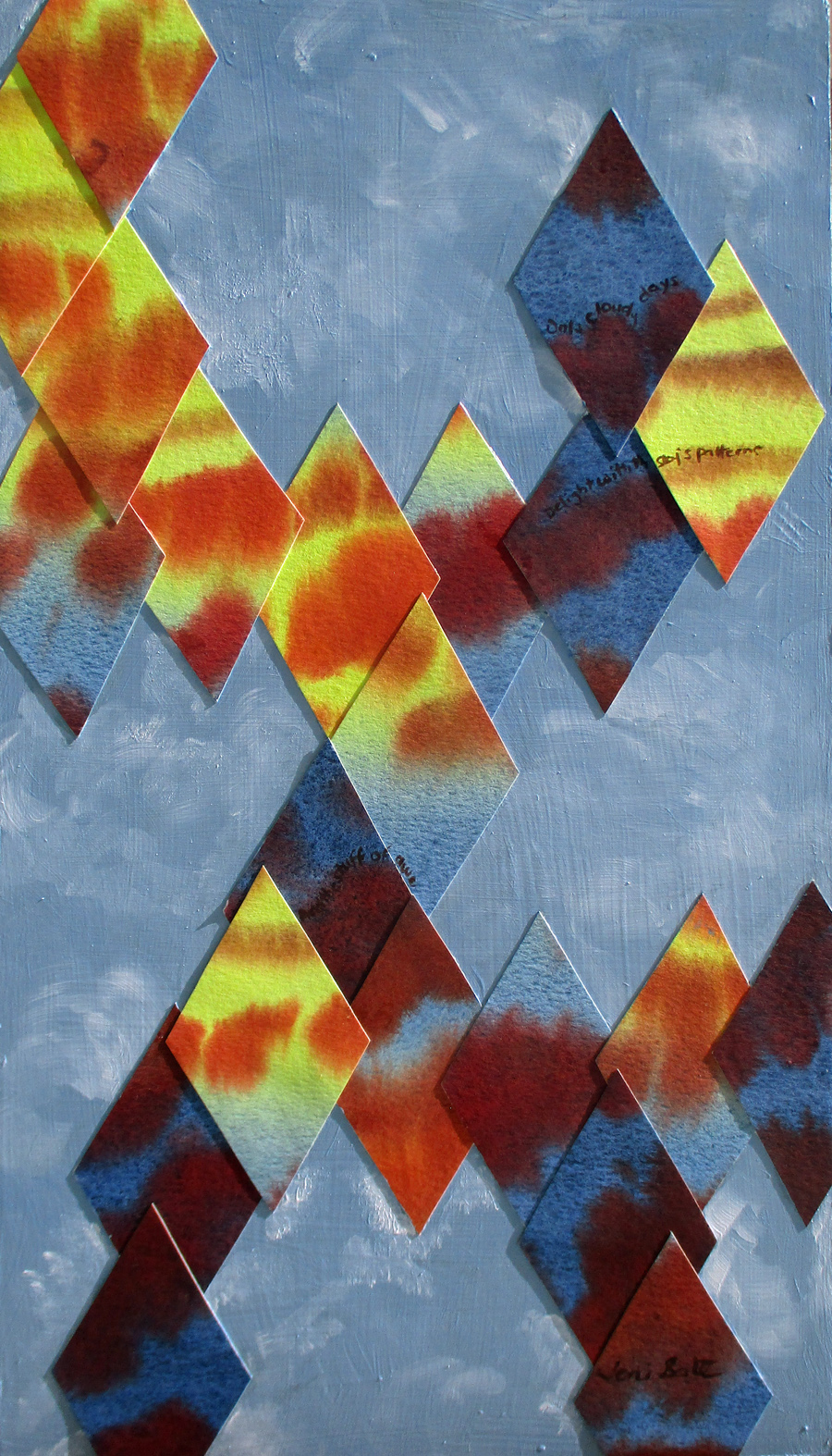 #1733 "Sky's pattern". Original mixed media on upcycled panel. 17x10". $170. The following poem is also painted into the painting: